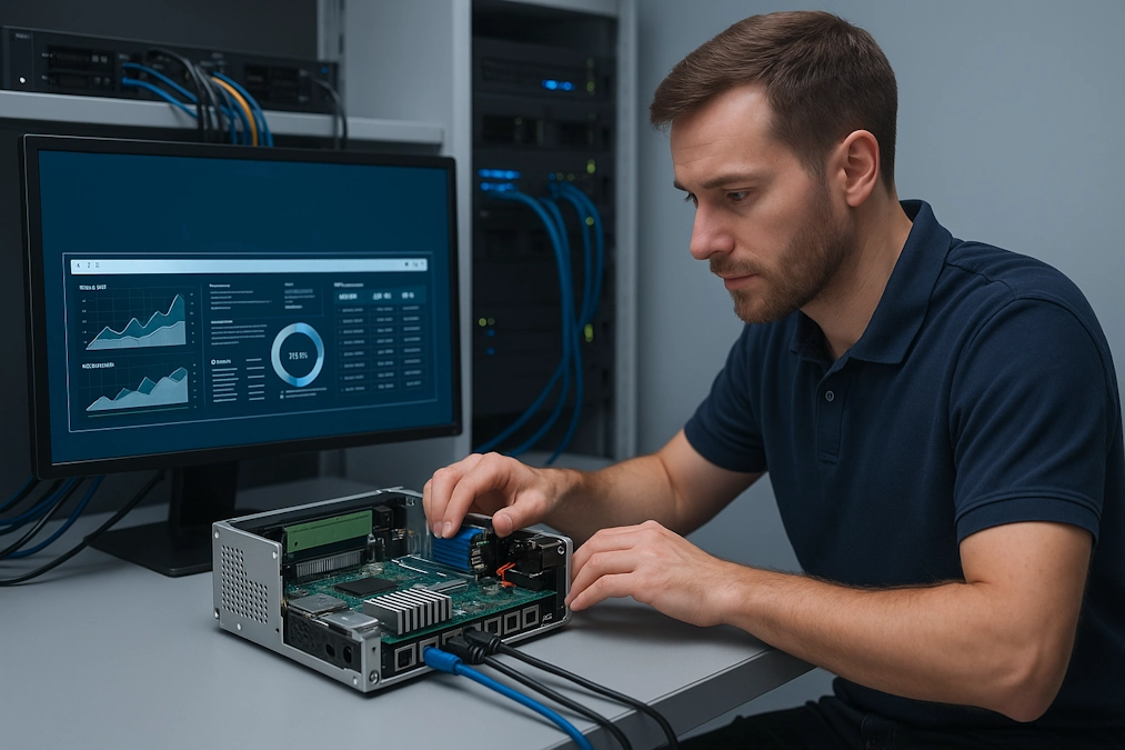 Chaque machine est testée pour garantir la compatibilité du DHCP, des interfaces LAN et des fonctions de supervision avant la mise en service.
